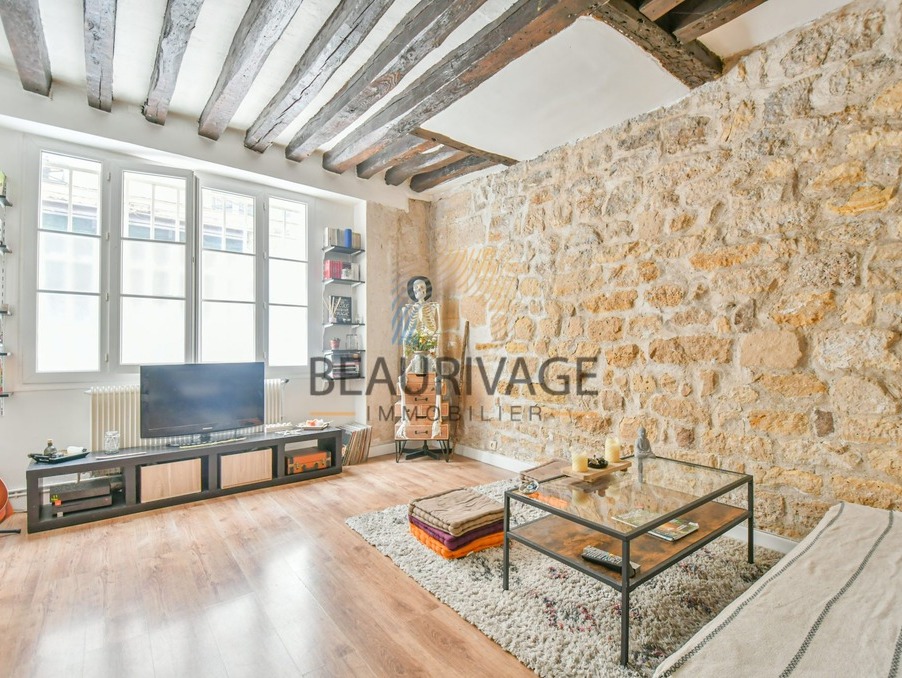 A VENDRE GRAND 2/3 PIECES PARIS Vème - PANTHEON / JARDIN DU LUXEMBOURG BeauRivage Immobilier vous présente cet appartement atypique de 49m² ( 60m2 au Sol ) au rdc d'un bel immeuble ancien (1750), dans le quartier très prisé du Panthéon, à 150m du Jardin du Luxembourg. Charmant, avec murs en pierre à nu, poutres apparentes, ce bien se compose d'un Living de 16m2, d'une Cuisine aménagée, d'une belle Chambre, d'une Salle de Bains avec WC, d'un Dressing et d'une petite pièce de 6m2 sous verrière. En sous-sol, une Cave de 6m2 avec un accès direct de l'appartement. Enorme potentiel. A visiter sans attendre ! Mandat N° 285. Honoraires à la charge du vendeur. Dans une copropriété de 10 lots. Quote-part moyenne du budget prévisionnel 2 200 €/an. Aucune procédure n'est en cours. DPE manquant Ce bien vous est proposé par un agent commercial. Nos honoraires : https://www.beaurivage-immobilier.com/fr/mentions-legales.html